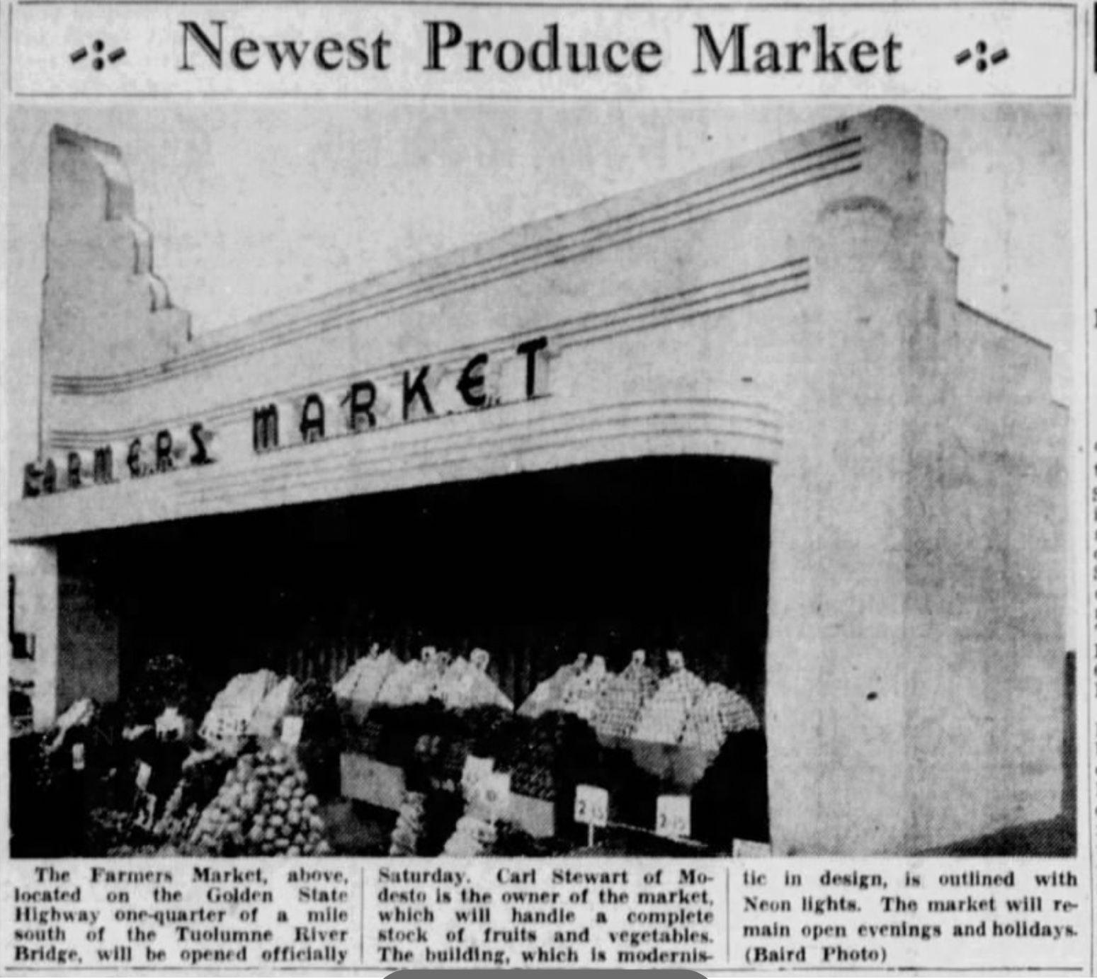 El mercado de agricultores abrió sus puertas el 2 de mayo de 1936 en South Ninth Street, al sur del río Tuolumne.