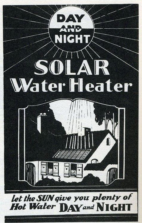 A un costo de $ 6.500, se instaló un calentador de agua solar diurno y nocturno en el techo del edificio. William J. Bailey patentó el sistema en 1910. “El plan es simple y consiste en un sistema de tuberías de agua que pasan a través de una caja cubierta de vidrio con un fondo de cobre hacia el sol. Las tuberías y la base de la caja están pintadas de negro. El agua al pasar a través de las tuberías se calienta casi a ebullición y pasa a un tanque de almacenamiento. Hay seis de estos sistemas de tuberías y tanques de almacenamiento, uno para cada apartamento. Los tanques tienen capacidad para 40 galones y están revestidos con asbesto que asegura la retención de prácticamente todo el calor en el agua.” Modesto Evening News, 29 de julio de 1913, página 6.
